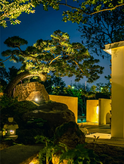 對于庭院來說,燈光仿佛第二次生命,不僅能烘托氛圍,還能聚集視覺,將自然的生命力貫穿其中。