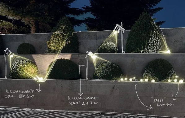 庭院燈光設計的裝飾作用可以通過燈具自身的造型質感以及燈具的排列組合,對空間起到點綴或者強化作用。