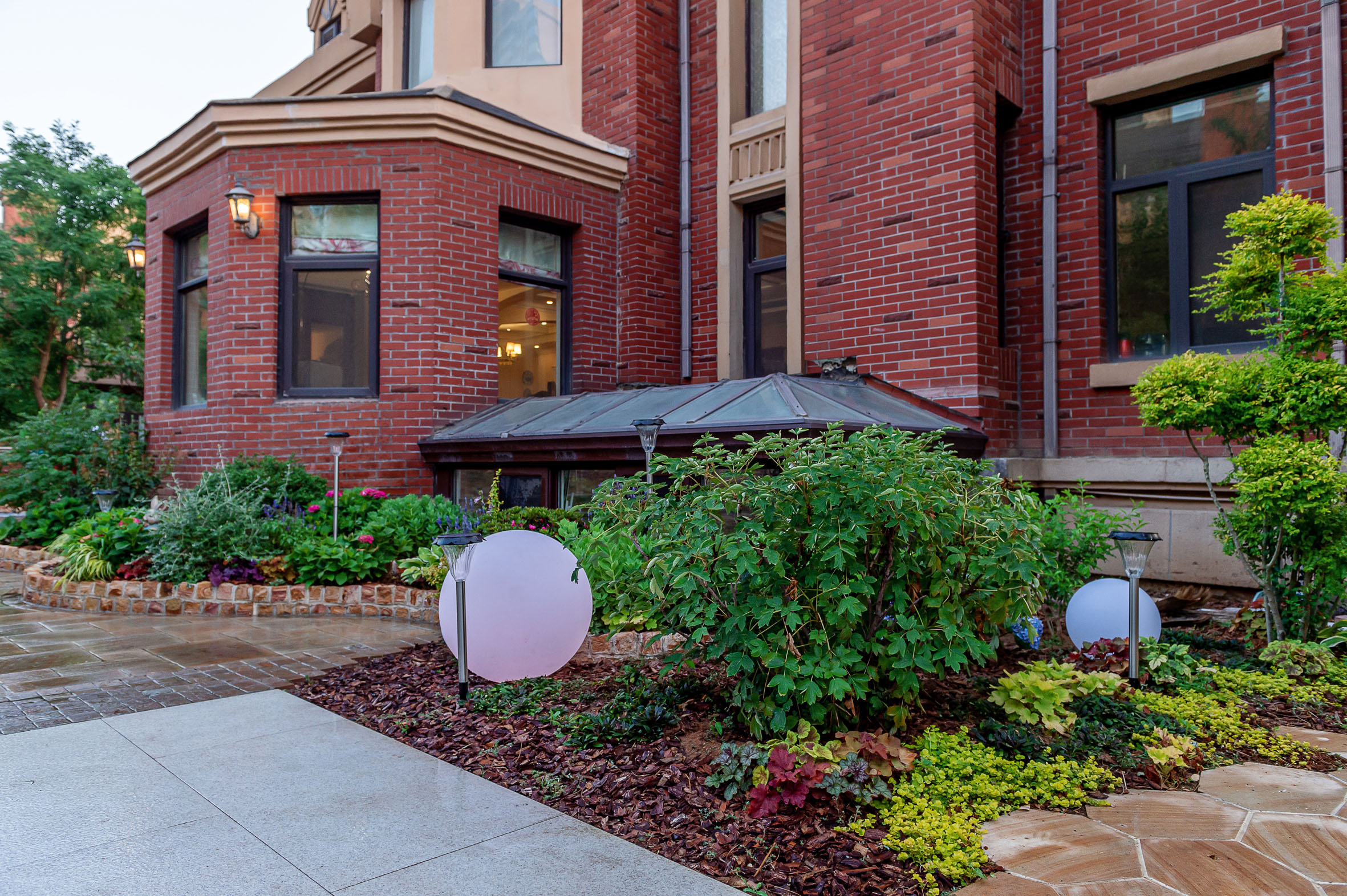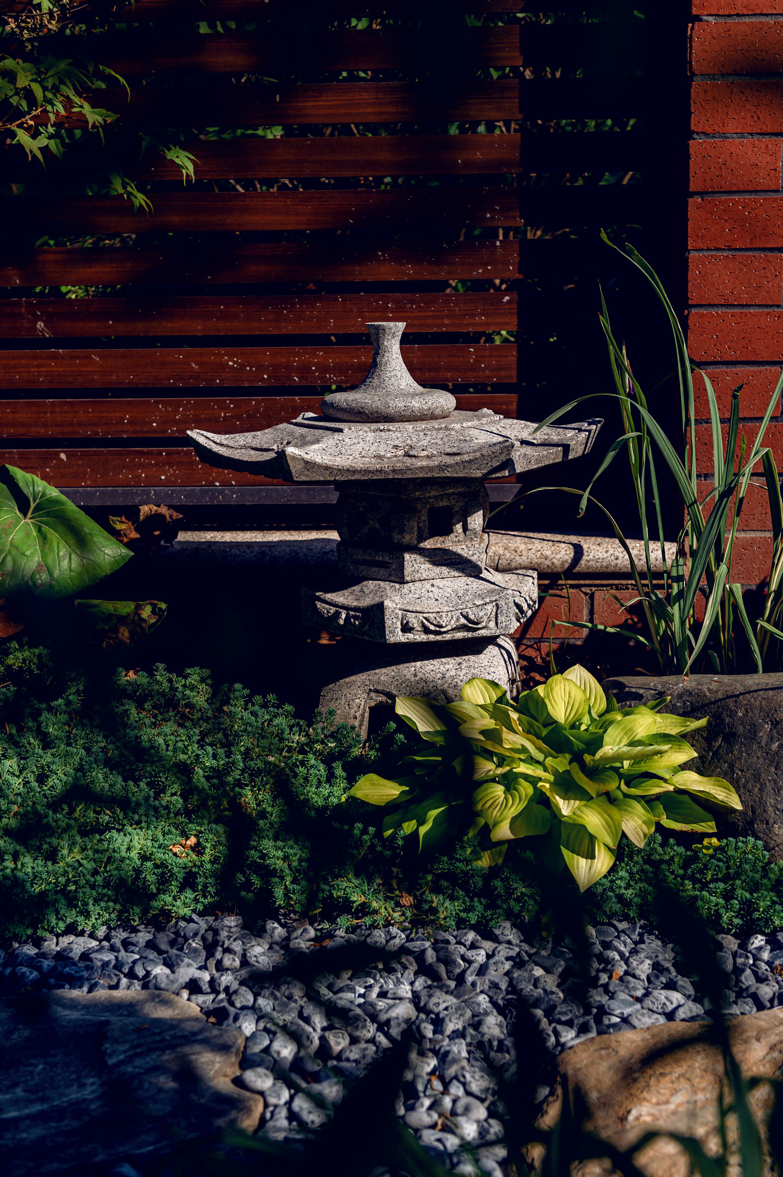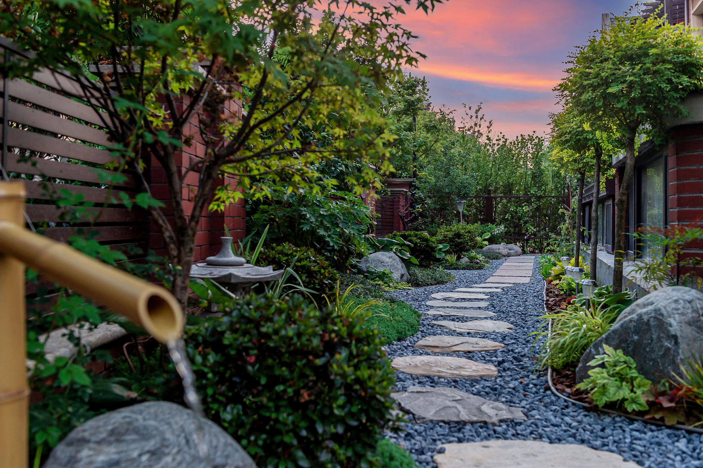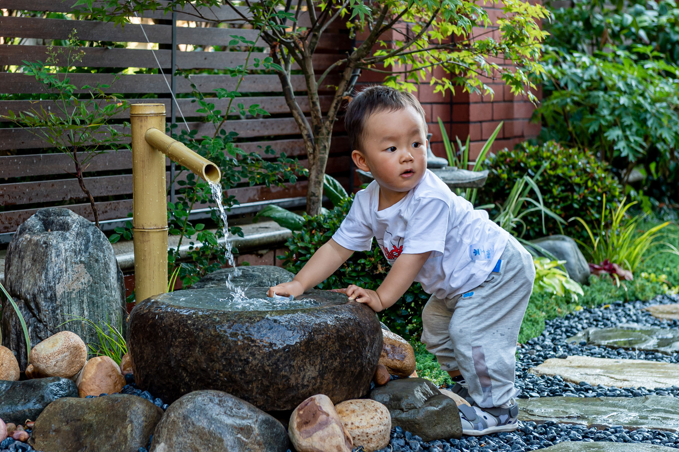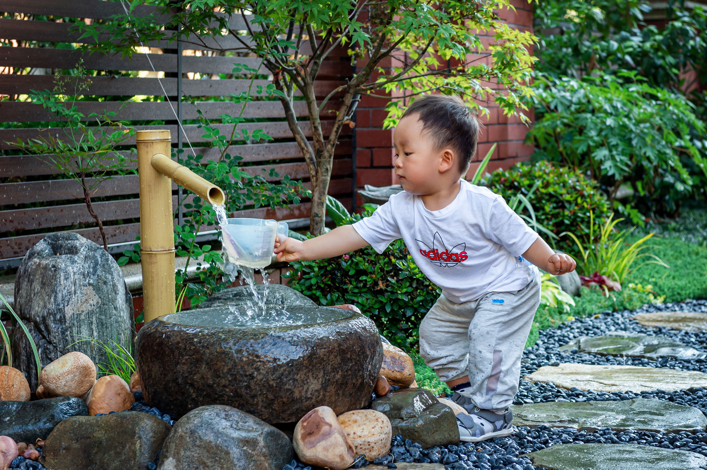 轉角處的南院以日式水缽、石燈、自然汀步等元素打造日式自然景觀,讓原本荒棄的角落重新煥發生機。日本紅楓、耐冬、大葉吳風草、礬根、杜鵑球等植物營造富有四季變化的綠化組合。在植物和光影的交織中漫步花園,感悟自然和生活的美好。