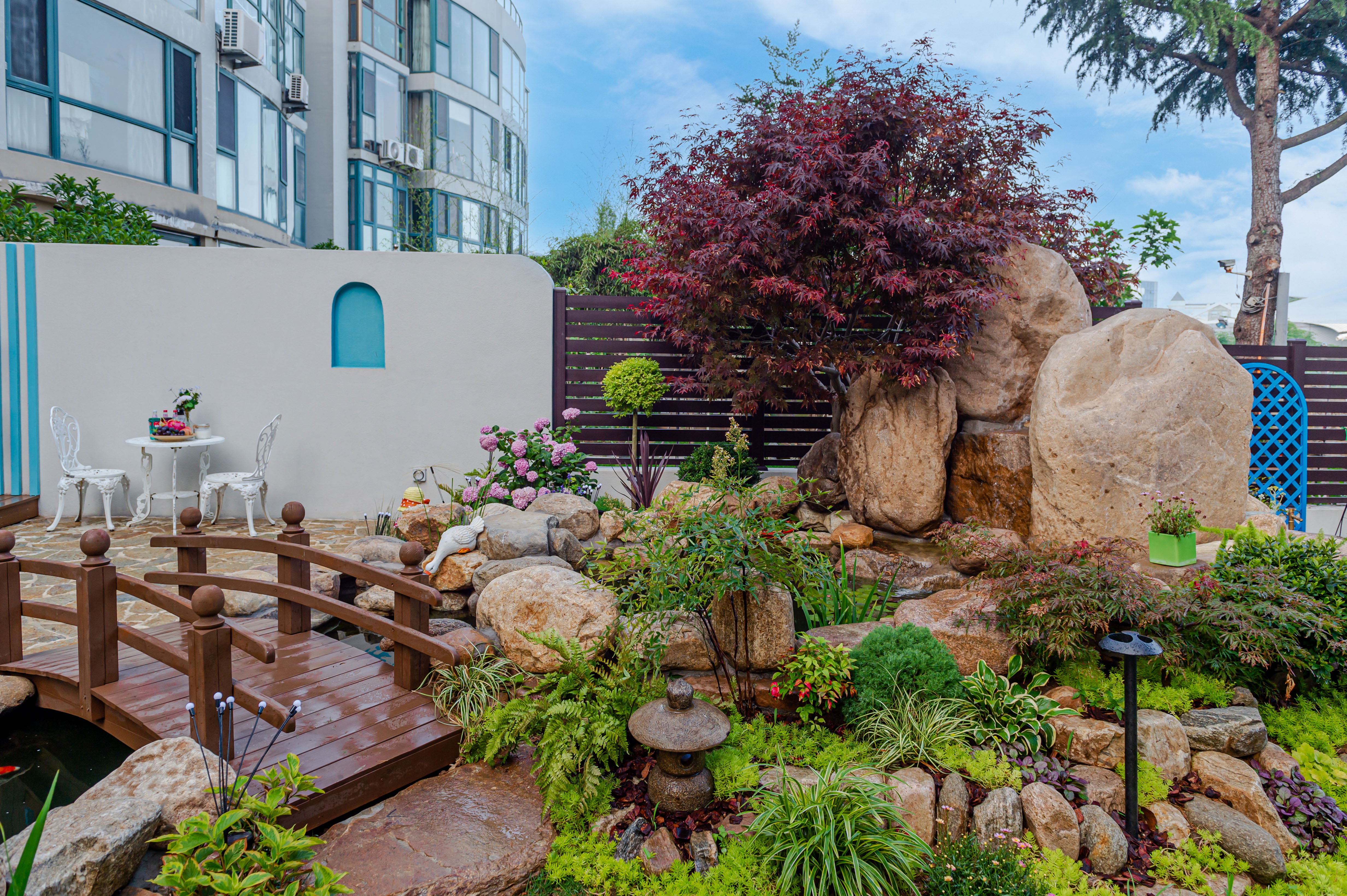 貫穿整個花園的自然水系,成為主要的觀景視覺點。