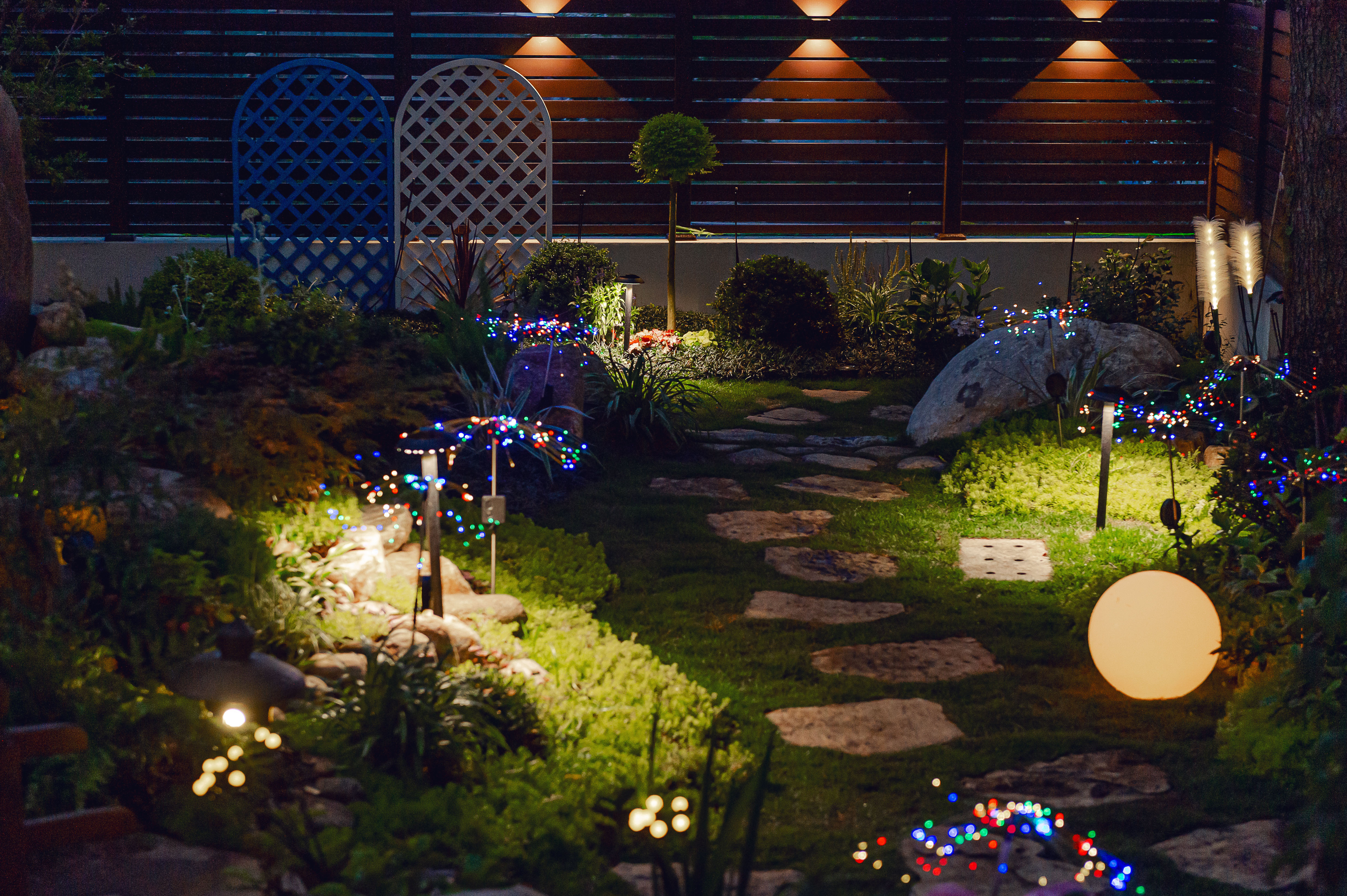 夜晚對于花園有著特殊的意義,我們在景觀設計時考慮到早晚交替的時刻,采用草坪燈、壁燈及月球燈等相互搭配,讓夜晚的花園也有著別樣的韻味。
