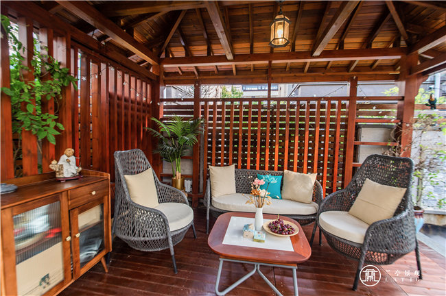 坐在水榭旁的藤椅上輕抿一口咖啡,抬頭看無數亮綠的葉子在風里悠然起舞,愿有一方庭院,釀一段恣意人生。庭院碧云,悠悠我心。三倆好友,幾杯清茶。淡去人工斧鑿的痕跡,唯有自然的別具匠心。一花一木,陣陣清風,皆流露出一種清寧的致美境界。