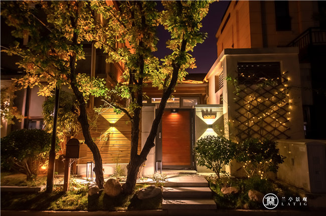 入夜十分,庭院內的照明亦或是暖調的橘黃,亦或是冷調的青白。通過不同強度的光的設計與運用,給雅致的庭院增添了幾分魅惑的顏色,比白天更引人遐思。