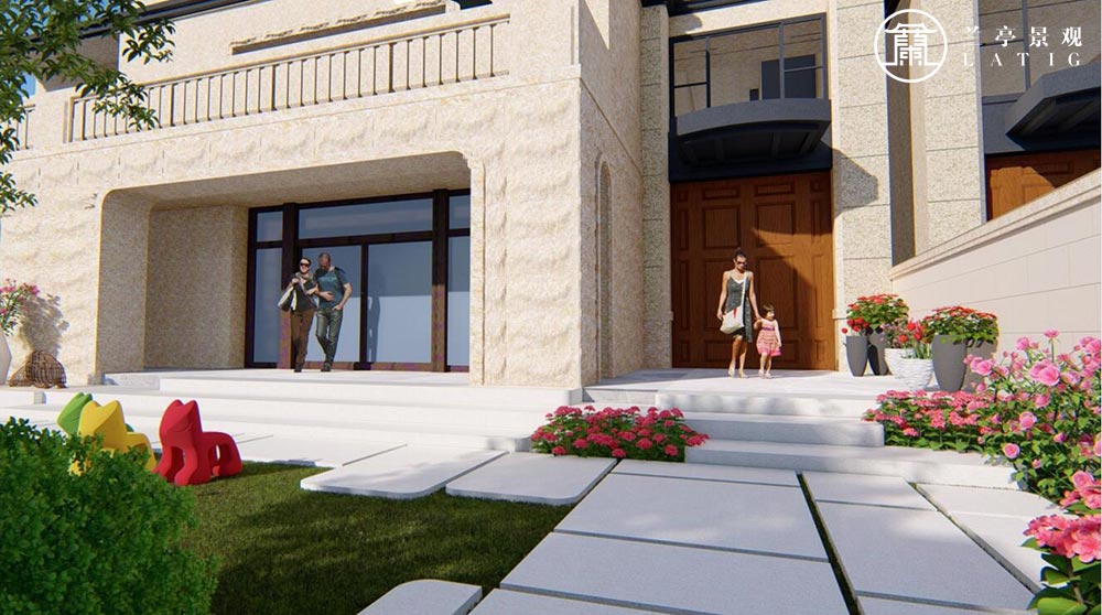 屬性:庭院效果圖 庭院面積:200-500㎡ 庭院設計風格:現代簡約