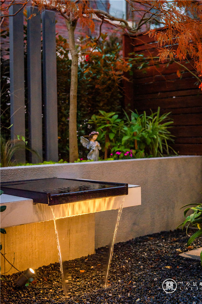 縱觀整個北花園,其空間功能相互咬合銜接,既是景觀空間,又是活動休閑空間。推開門,搖曳的羽毛楓下,小天使靜靜的站在花叢中,伴隨著悅耳的流水聲,這美好的畫卷映入眼簾。