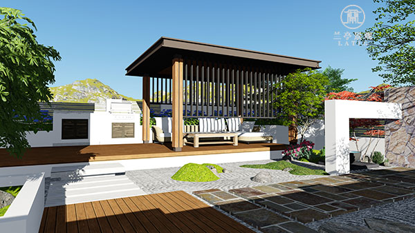 南院和側(cè)院風(fēng)格定位為現(xiàn)代日式風(fēng),北院風(fēng)格定位為田園風(fēng)。通過(guò)設(shè)計(jì)讓原本不大的兩個(gè)花園空間,得到共享。將南、北院兩種不同風(fēng)格的,完美地融合在一起。