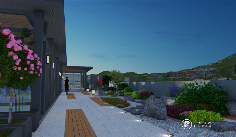 屬性:庭院效果圖 庭院面積:500-1000㎡ 庭院設計風格:現代簡約