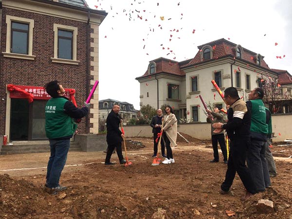 蘭亭景觀孫總攜設(shè)計(jì)部、工程部、營銷部的項(xiàng)目負(fù)責(zé)人員提前到達(dá)現(xiàn)場,恭賀業(yè)主庭院景觀項(xiàng)目開工大吉! 伴隨著禮花綻放,鏟土儀式準(zhǔn)時開始。俗話說“春雨貴如油”,它也及時趕來參加這場歡慶典禮,為業(yè)主歡呼添彩!