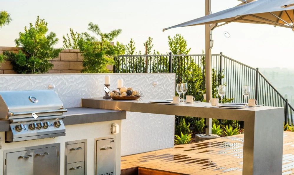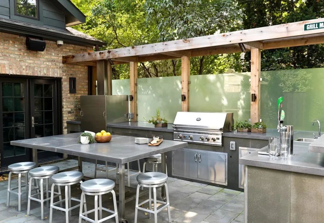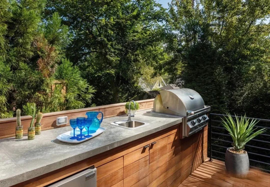 3、增加戶外生活體驗: 通過設(shè)置戶外廚房,可以增加戶外生活的樂趣和體驗。人們可以在戶外燒烤、享用美食,同時欣賞庭院的美景,感受大自然的氣息,提升生活質(zhì)量。