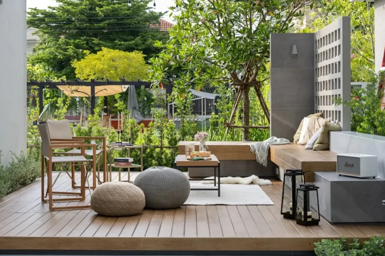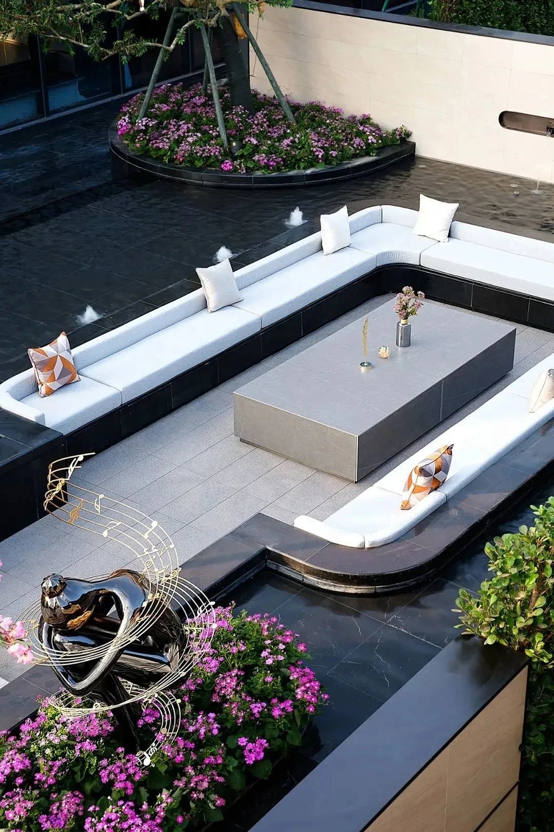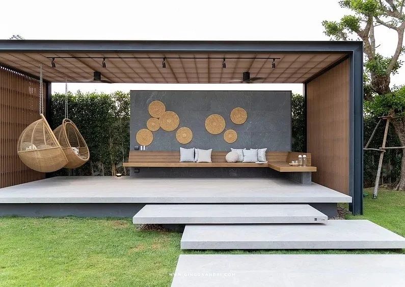 c.開放式:視野開闊,以休閑平臺為主,可以選擇與花園整體風格相匹配的材質和色彩,打造出既美觀又實用的休閑空間。