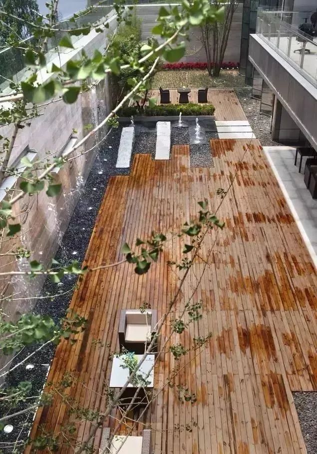 木原色是體現自然的色彩,與灰色、白色等搭配通常用鋪裝、臨水欄桿、小品構架等,體現“新中式”景觀設計沿襲中國古典園林“雖由人作,宛若天開”的造園特點。青島別墅花園設計